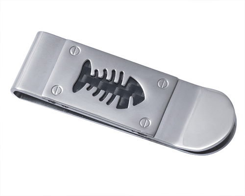 STAINLESS STEEL TIE CLIP WITH BLACK CARBON FIBRE IN FISH SHAPE