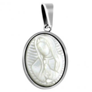 STAINLESS STEEL RELIGIOUS PENDANT WITH VIRGIN MARY IN SHELL IN S/S COLOUR