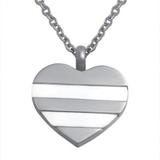STAINLESS STEEL PENDANT NECKLACE WITH HEART PENDANT WITH 2 STRIP IN SHELL ALL IN STEEL COLOR