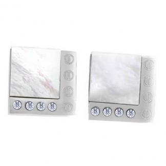 STAINLESS STEEL EARRINGS IN SQUARE SHAPE WITH SHELL & CZ WITH SCREW PATTERN IN S/S COLOR (Set with SN568)